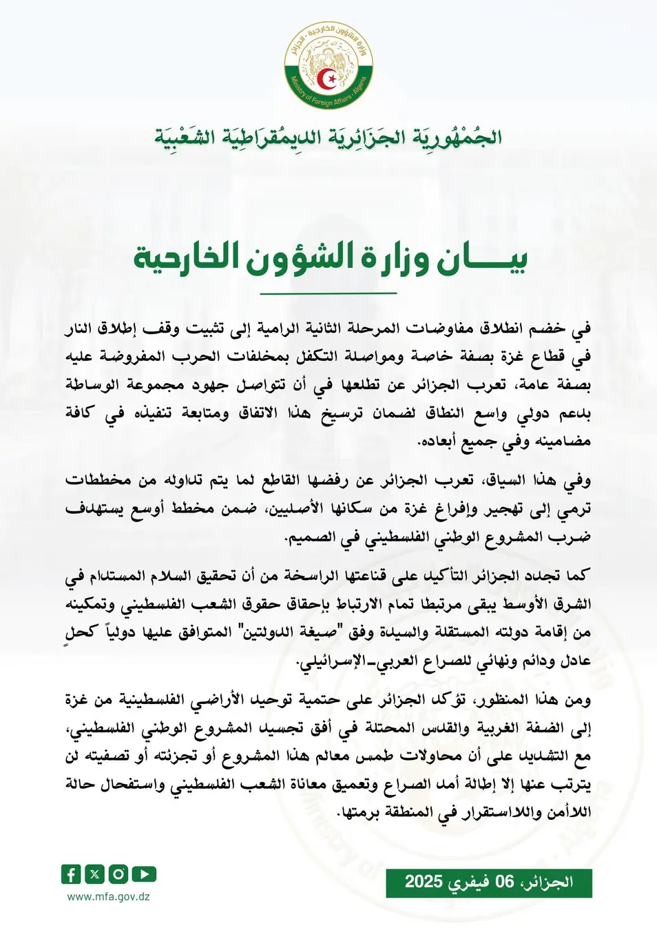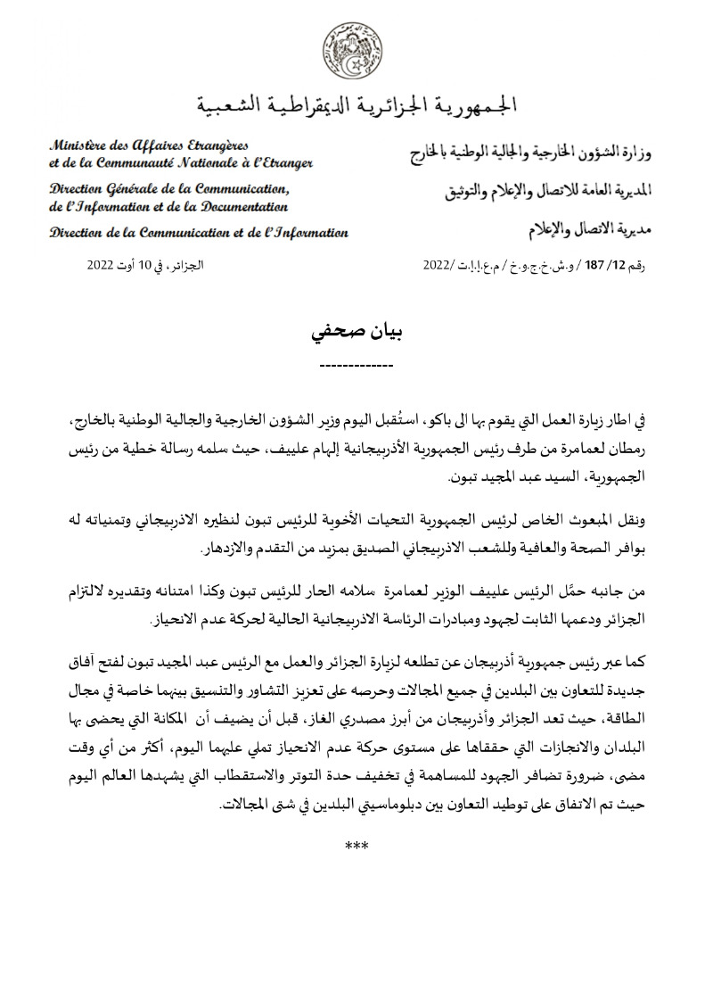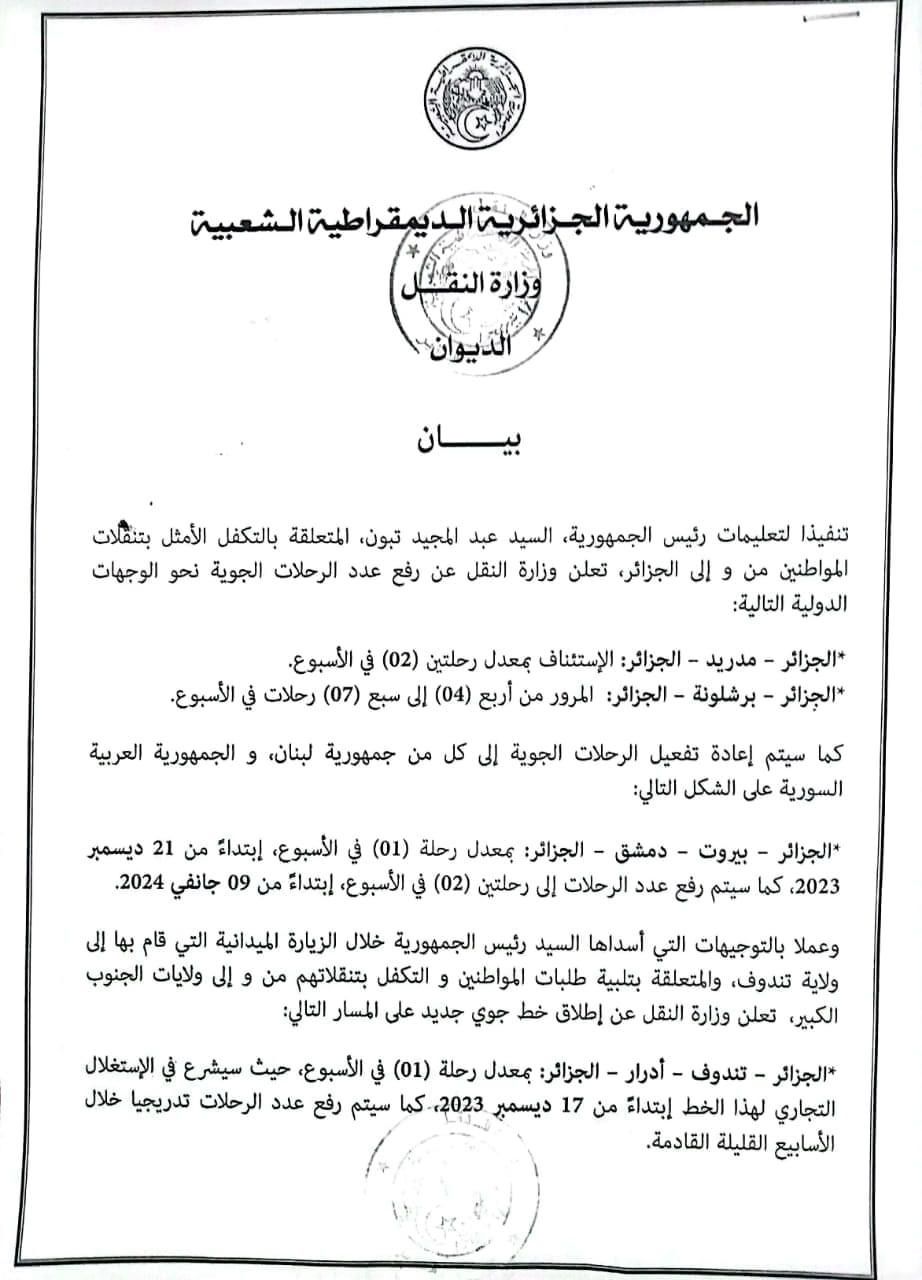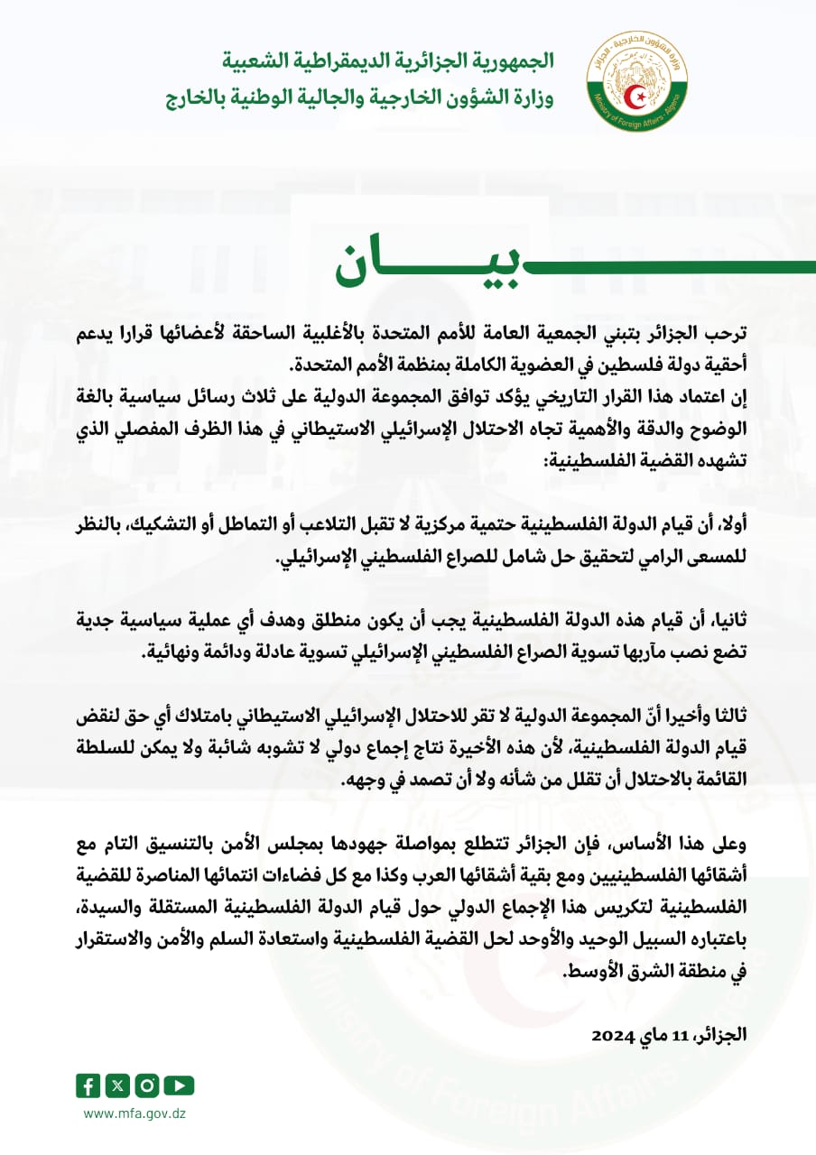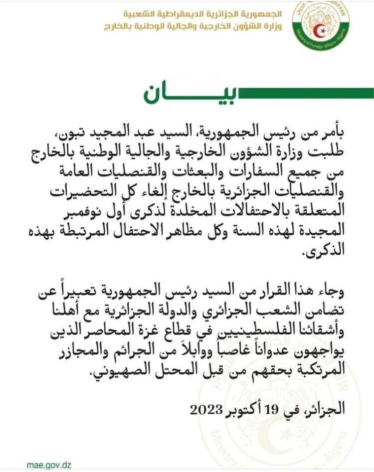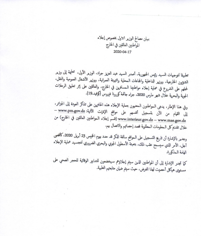 بيان صحغي في إطار الهبة التضامنية التي بادرت بها الجزائر... اقرأ المزيد