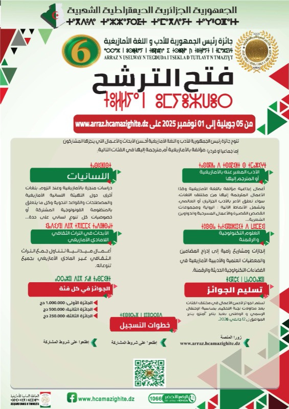 تنظم المحافظة السامية للأمازيغية جائزة رئيس الجمهورية للأدب وا... اقرأ المزيد
