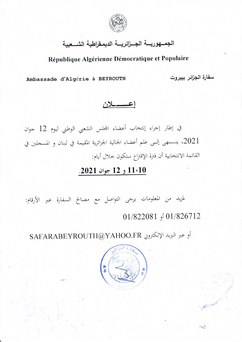 تقديم تاريخ إفتتاح الإقتراع لتصويت المواطنين الجزائريين بالخارج