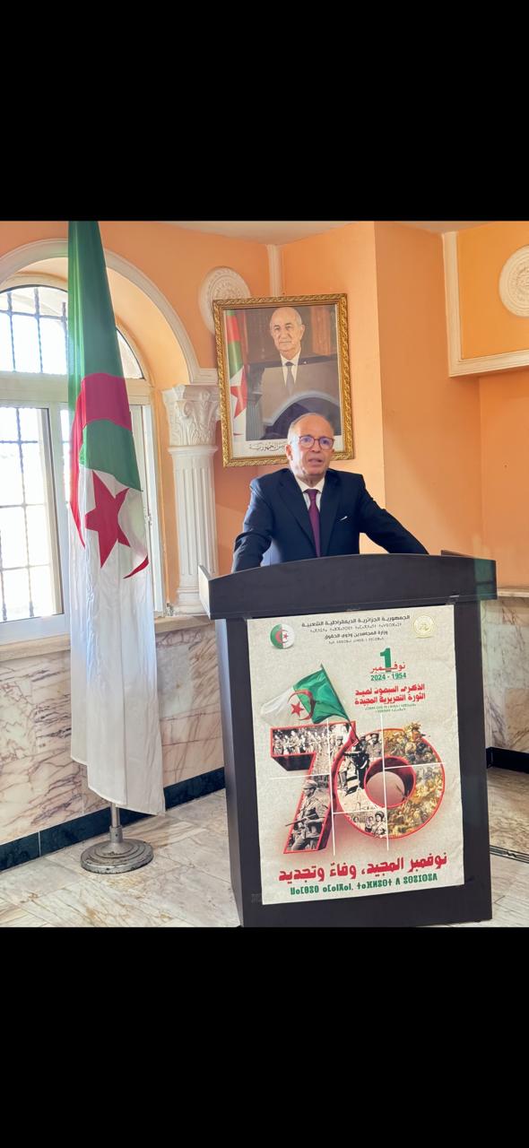 احيت السفارة الجزائرية بلبنان صباح يوم الفاتح من نوفمبر بمقر البعثة الدبلوماسية، الذكرى السبعين لاندلاع الثورة التحريرية الجزائرية المظفرة ، تحت شعار نوفمبر المجيد..وفاء و تجديد. فضلا عن كلمة استذكارية ألقاها سعادة السفير رشيد بلباقي في حضور الطاقم الدبلوماسي و الاعوان المحليين العاملين معة، تضمنت فعاليات الاحتفاء رفع العلم ، الاستماع للنشيد الوطني وقراءة الفاتحة ترحما على أرواح الشهداء.