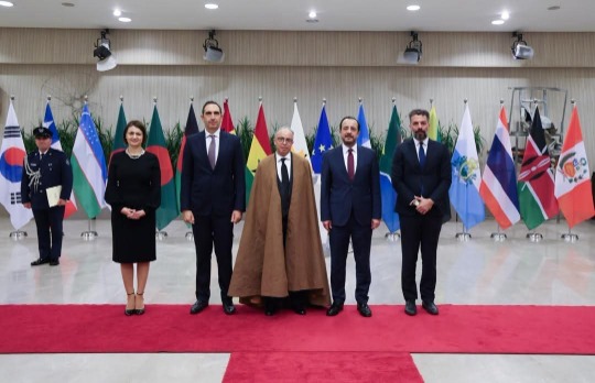 صور تخلد لحظات تقديم يوم 16 ديسمبر 2024 أوراق اعتماد السيد رشيد بلباقي سفيرا للجمهورية الجزائرية بنيقوسيا مع اقامة ببيروت، إلى الرئيس القبرصي السيد نيكوس خريستودوليدس قبل ان يتوسط في الصورة العائلية الي جانب الرئيس كل من وزير الداخلية القبرصي، مستشار الرئيس للشؤون الدبلوماسية و كذا المديرة العامة للتشريفات بوزارة الشؤون الخارجية القبرصية.
