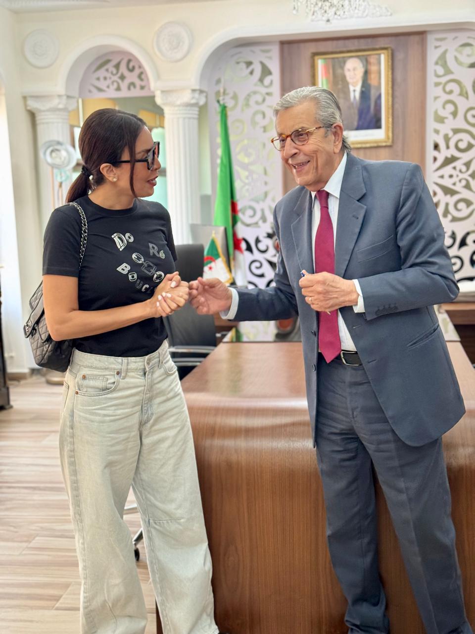 كما نوه سعادة السفير بالمكانة التي تحتلها الفنانة أمل بوشوشة في المشهد الدرامي العربي، مشيدًا بمسيرتها التي تُمثل نموذجًا للتميز الجزائري في المهجر، ومثمنًا إسهامها في إبراز الوجه الحضاري والثقافي للجزائر.