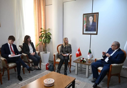 استقبل الأمين العام لوزارة الشؤون الخارجية، السيد لوناس مقرمان، هذا الاثنين 02 مارس 2026، مساعدة كاتب الدولة للشؤون الخارجية مكلّفة بالشرق الأوسط وشمال إفريقيا لدى وزارة الشؤون الخارجية للكونفدرالية السويسرية، سعادة السفيرة مونيكا شموتز كيرغوز، وذلك في إطار زيارة العمل التي قادتها إلى الجزائر. وقد شكل هذا اللقاء سانحة للتطرق لعلاقات التعاون والشراكة التي تجمع الجزائر وسويسرا في عديد المجالات، وذلك في إطار الزيارات والاستحقاقات الثنائية التي تم برمجتها بين البلدين خلال العام الجاري. كما تبادل الجانبان، الرؤى حول أبرز القضايا الإقليمية والدولية الراهنة.