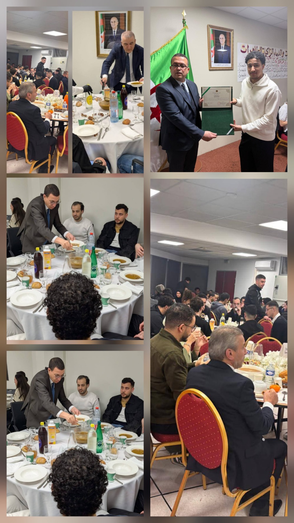 شارك كاتب الدولة لدى وزير الشؤون الخارجية المكلف بالجالية الوطنية بالخارج، السيد سفيان شايب Sofiane Chaib اليوم عبر تقنية التحاضر المرئي عن بعد، في الإفطار الرمضاني الذي نظمته ممثلياتنا القنصلية في باريس وضواحيها، والمخصّص للطلبة من أبناء جاليتنا الوطنية المقيمين في المقاطعات القنصلية الخمس بالمنطقة. وفي كلمته بالمناسبة، أوضح السيد كاتب الدولة أن تنظيم هذا النشاط يندرج ضمن سلسلة من المبادرات الموجهة لفائدة مختلف فئات جاليتنا الوطنية خلال شهر رمضان المبارك، في تأكيد متجدد على حرص الوزارة ومصالحها الخارجية على تكثيف قنوات التواصل مع مواطنينا المقيمين بالخارج ومرافقتهم خلال مختلف المناسبات الوطنية والدينية، بما يعزّز قيم الانتماء ويكرس تمسك أبناء الجالية بهويتهم الوطنية وتقاليدهم الأصيلة. كما شكلت هذه الفعالية، التي جرت في أجواء تعكس روح الترابط والتضامن والانتماء الوطني، فرصة للتأكيد على العناية التي توليها الدولة لمواطنيها المقيمين بديار المهجر، وعلى حرصها الدائم على مرافقتهم ورعايتهم، لا سيما الفئات الطلابية، التي تحظى بمكانة خاصة ضمن أولويات برنامج عمل وزارة الشؤون الخارجية، وذلك في إطار تجسيد تعليمات السلطات العليا للبلاد الرامية إلى حماية الجالية الوطنية بالخارج وتعزيز مساهمتها في مختلف المشاريع التنموية للوطن.